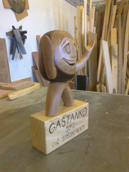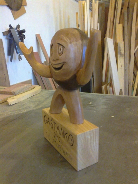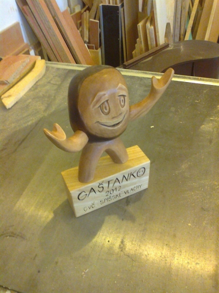 Description: "Gaštanko" figure is carved from linden wood. Height is up to 40 cm, width 25 cm. The finish is made stains and matte.